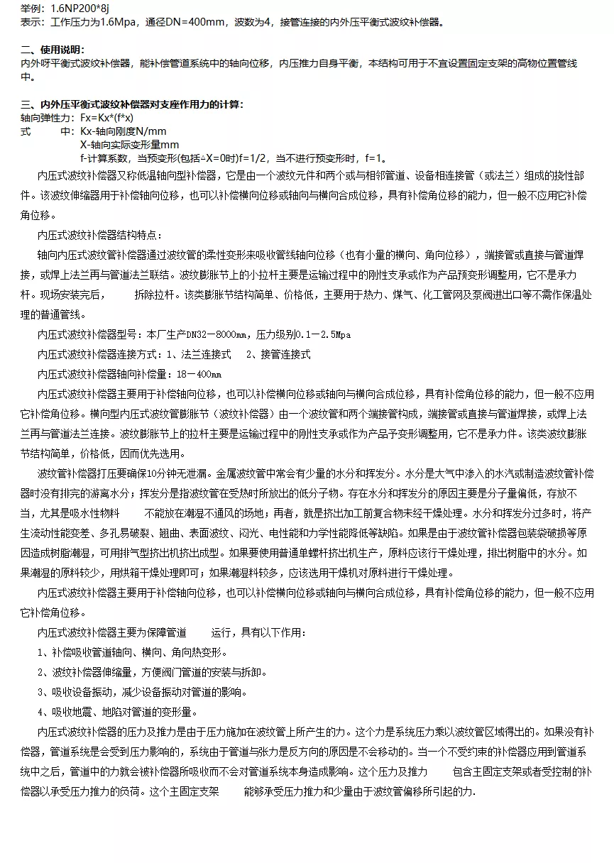 內外壓力平衡式波紋補償器